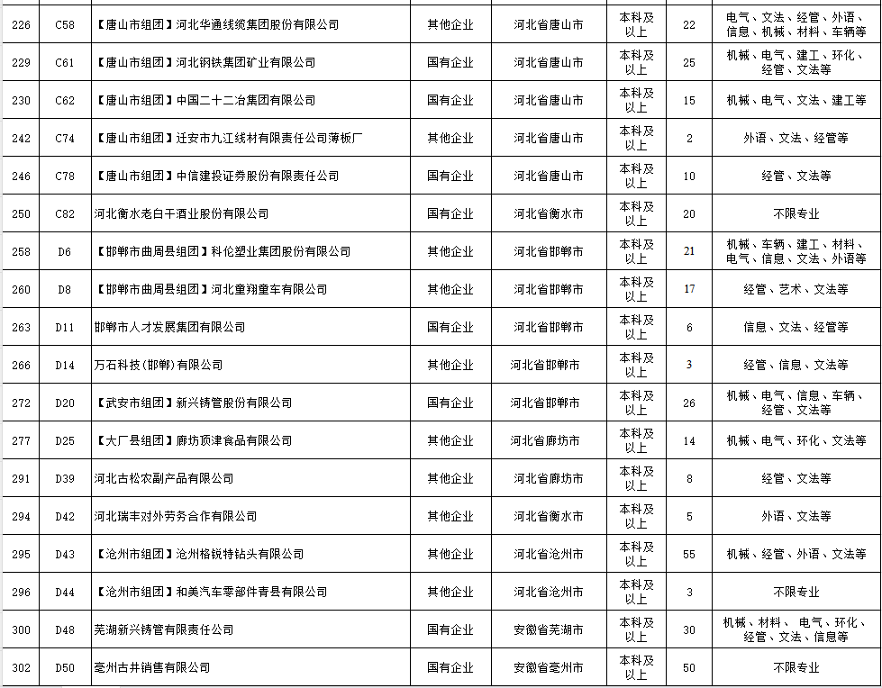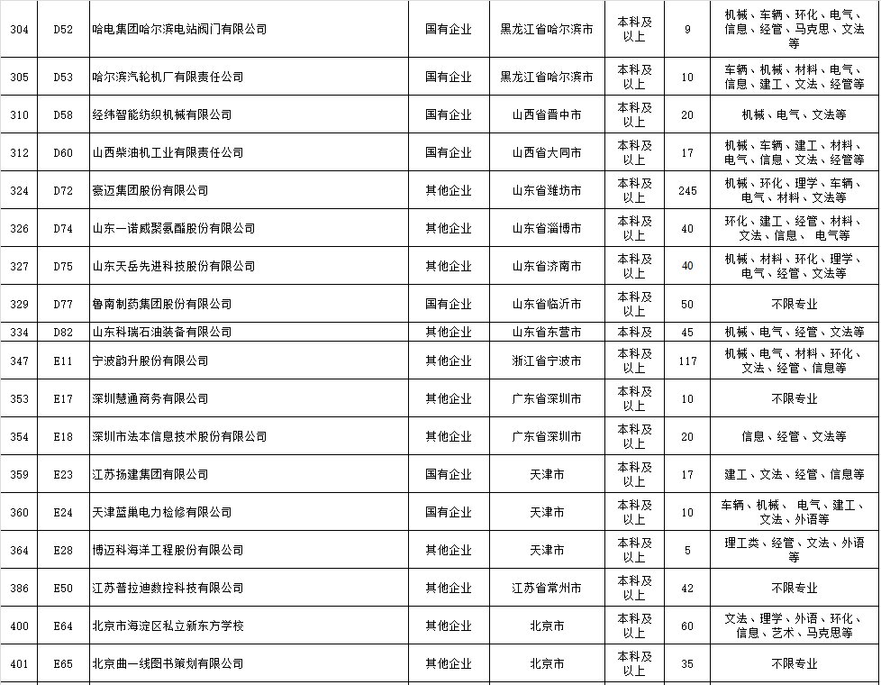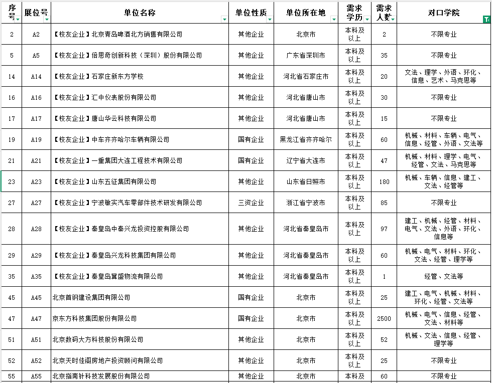 本次招聘会规模盛大,吸引了来自全国20个省(区、市)、73个地市的近500家企业参与,汇聚多重优质就业选择。其中包括: 一重集团、中航工业集团等央国企117家,常州宝菱重工、宁波敏实汽车等三资企业25家,长城汽车、三河同飞制冷等民营企业328家,中初等教育单位24家;其中,还包括校友企业42家,北京市海淀区、唐山市等10个地方政府组团招聘,总用人需求超过2.5万人,岗位覆盖学校全部学科专业。