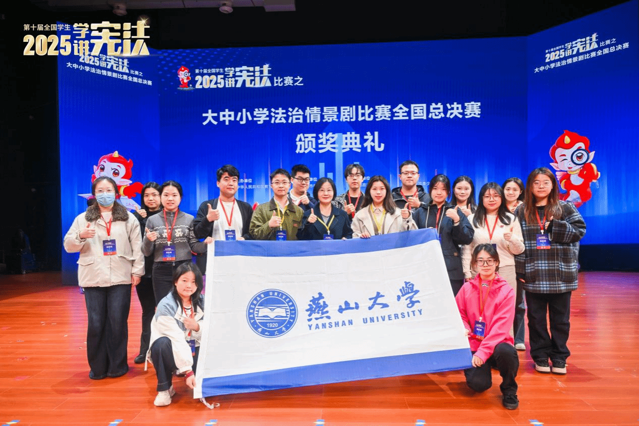 2025年11月8日至11日,第十届全国学生“学宪法 讲宪法”比赛之大中小学法治情景剧全国总决赛在重庆举行。本次比赛由教育部主办,重庆市教育委员会承办,西南政法大学协办,教育部全国青少年普法网支持。燕山大学文法学院(公共管理学院)参赛作品《火种》荣获全国二等奖,张玉华、刘雪峰、卢雨涵三位教师获评“优秀指导教师”。