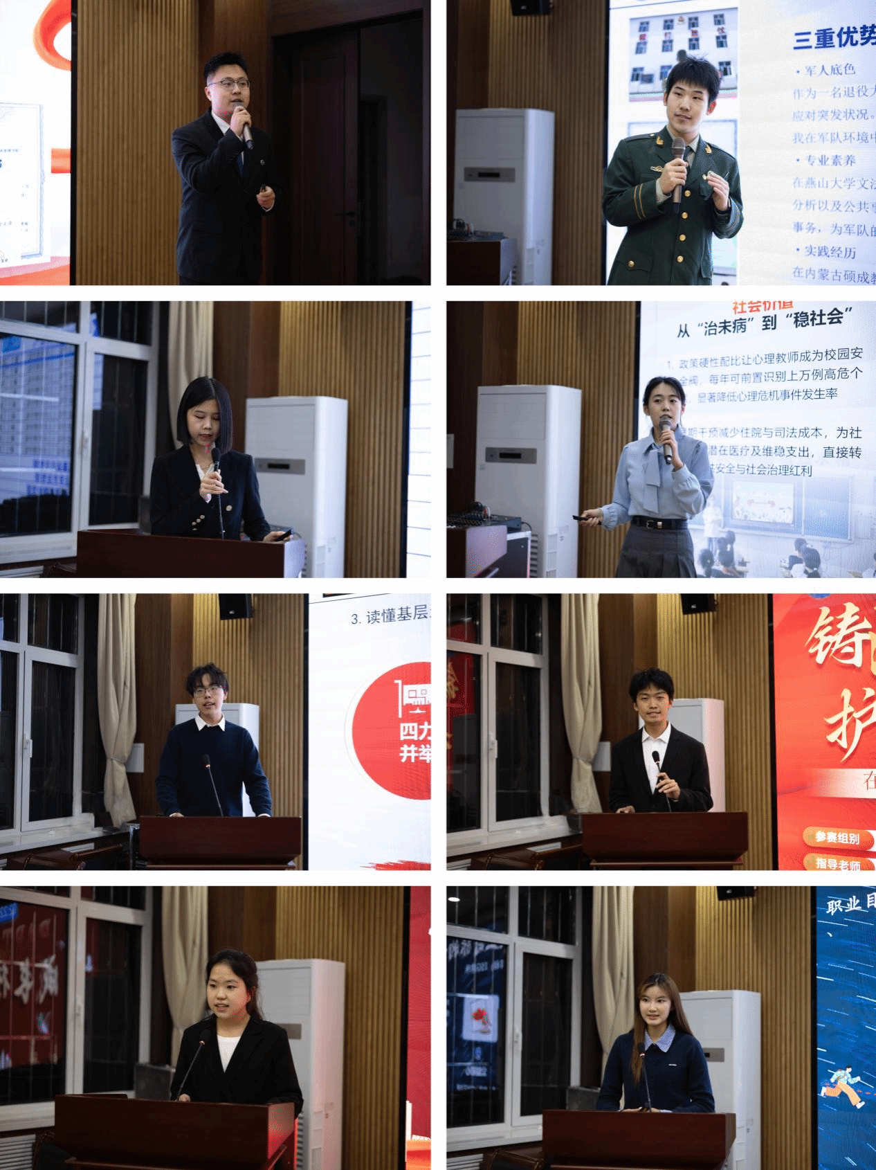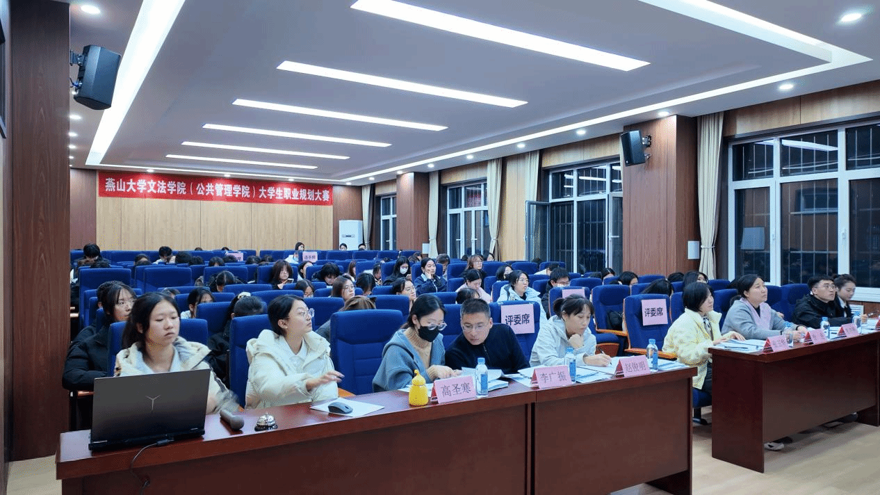 筑梦青春志在四方,规划启航职引未来。为深化大学生职业生涯教育,践行“以赛促学、以赛赋能”的育人理念,帮助学生树立科学的成才观、就业观与择业观,11月14日晚7时,燕山大学第三届大学生职业规划大赛文法学院(公共管理学院)复赛于人文馆114会议室顺利举行。招生就业处赵俊明、文法学院(公共管理学院)党委副书记张玉华、副处级专职辅导员徐进、团委书记曹婷婷、就业工作负责人刘宏亮、辅导员高圣寒、李广振出席并担任评委。