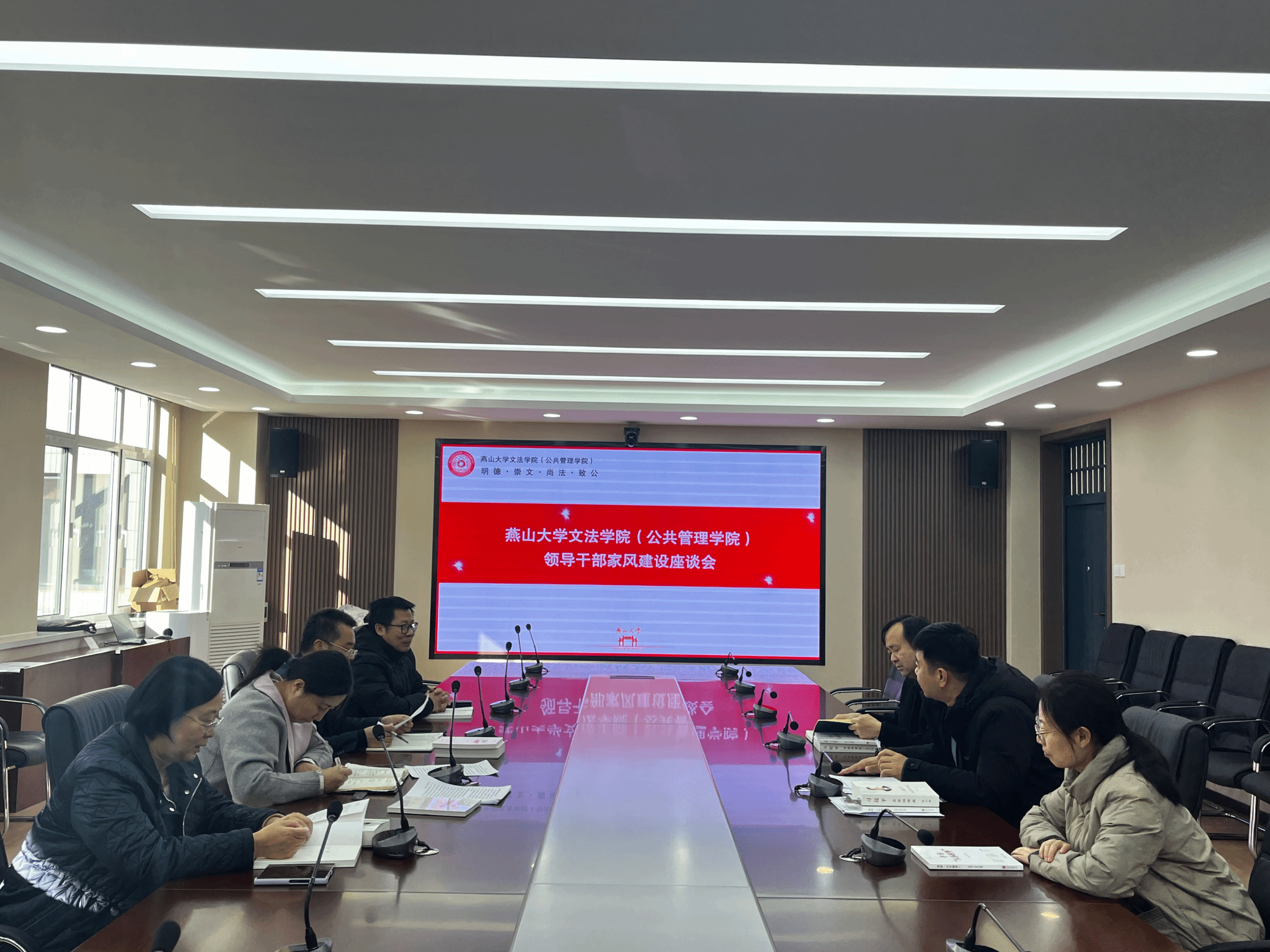 12月4日上午,文法学院(公共管理学院)在人文馆224召开领导干部家风建设座谈会。学院党委书记杨健民主持会议,学院处级领导干部及家属代表苗俊玲参加座谈。