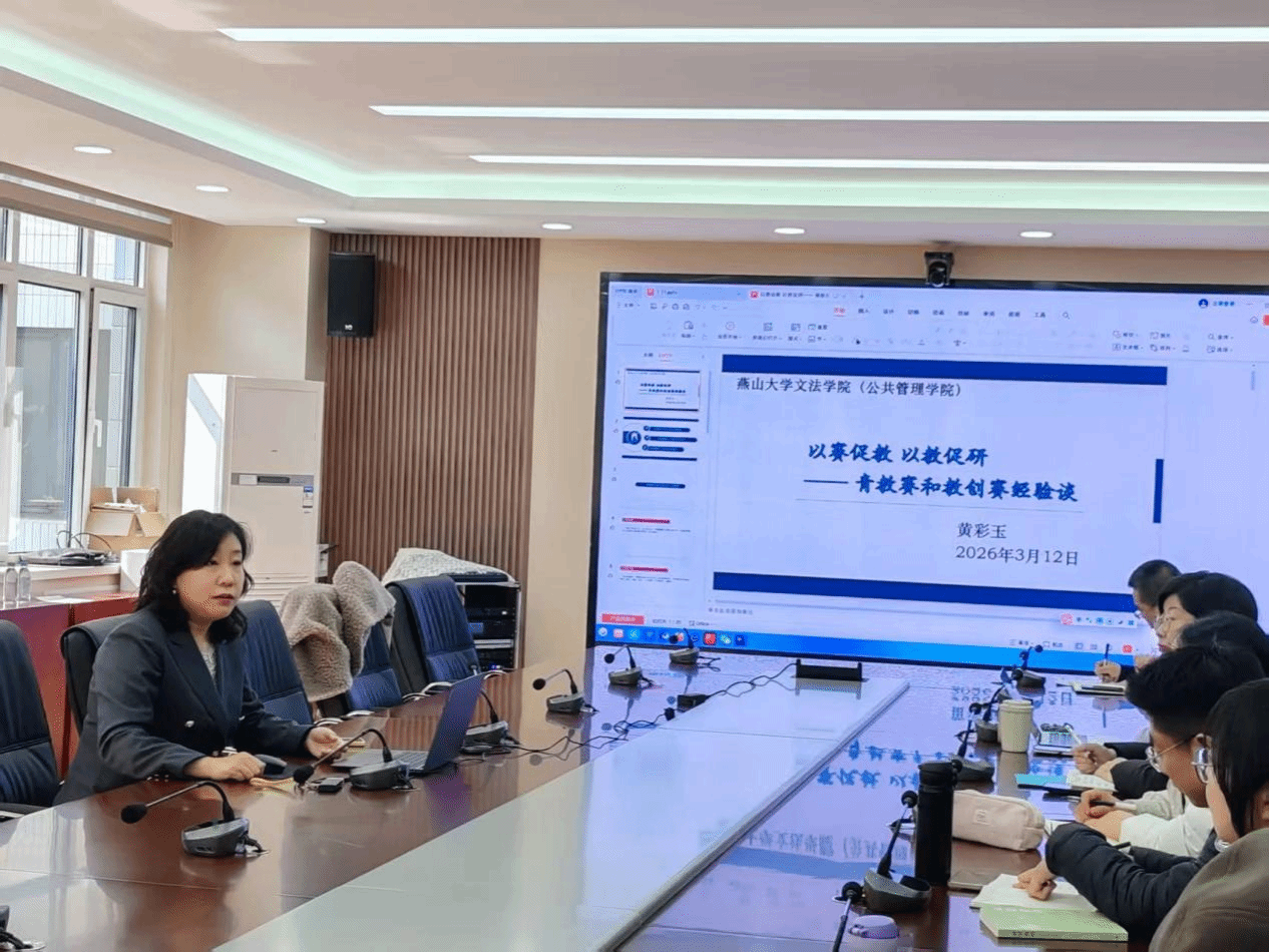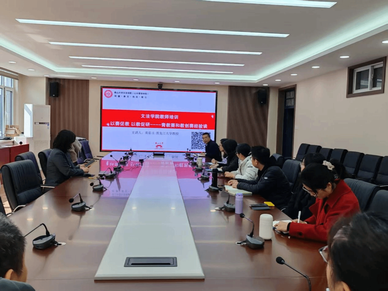 2026年3月12日,为提升教师教学能力,促进教学质量与学术研究水平的共同提高,文法学院在人文馆224成功举办了一场以“以赛促教 以教促研——青教赛和教创赛经验谈”为主题的教师培训活动。本次培训特邀黑龙江大学博士生导师、龙江学者、黑龙江省语言学会秘书长黄彩玉教授担任主讲嘉宾,吸引了学院众多教师积极参与。