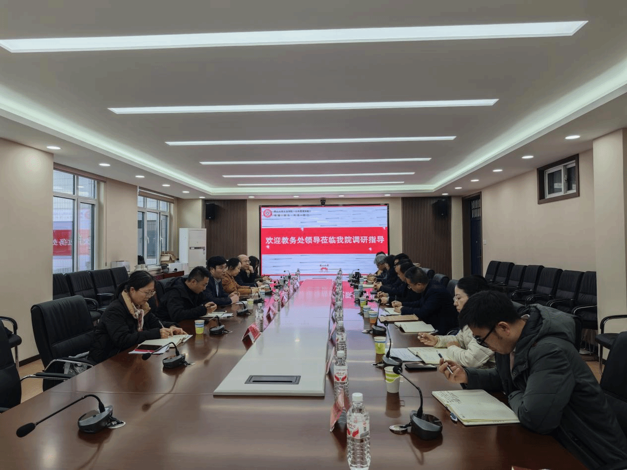 2026年3月10日,教务处处长姚建涛、副处长赵春梅、靖鲲鹏、教师培训中心主任宋俊杰与相关科室工作人员一行莅临文法学院,开展新学期本科教学工作专题调研。文法学院党委书记杨健民、院长丛鑫、教学副院长王春城以及学院各系主任及教务科参加调研座谈会。