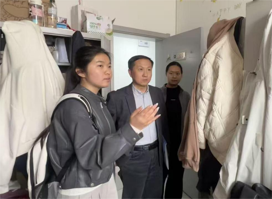 李兴国深入寝室与同学们亲切交谈,详细询问大家的学习进度、生活情况,认真倾听同学们在学业发展、日常管理、生活服务等方面的需求与建议。作为思政班主任,李兴国结合自身教学科研经验和学生成长规律,有针对性地为同学们答疑解惑,鼓励大家珍惜大学时光,明确学习目标,努力成长为德才兼备的新时代青年。走访期间,李兴国还仔细查看了学生寝室的卫生状况、安全设施,叮嘱同学们要时刻树立安全意识,严格遵守学校宿舍管理规定,杜绝违规用电等安全隐患。